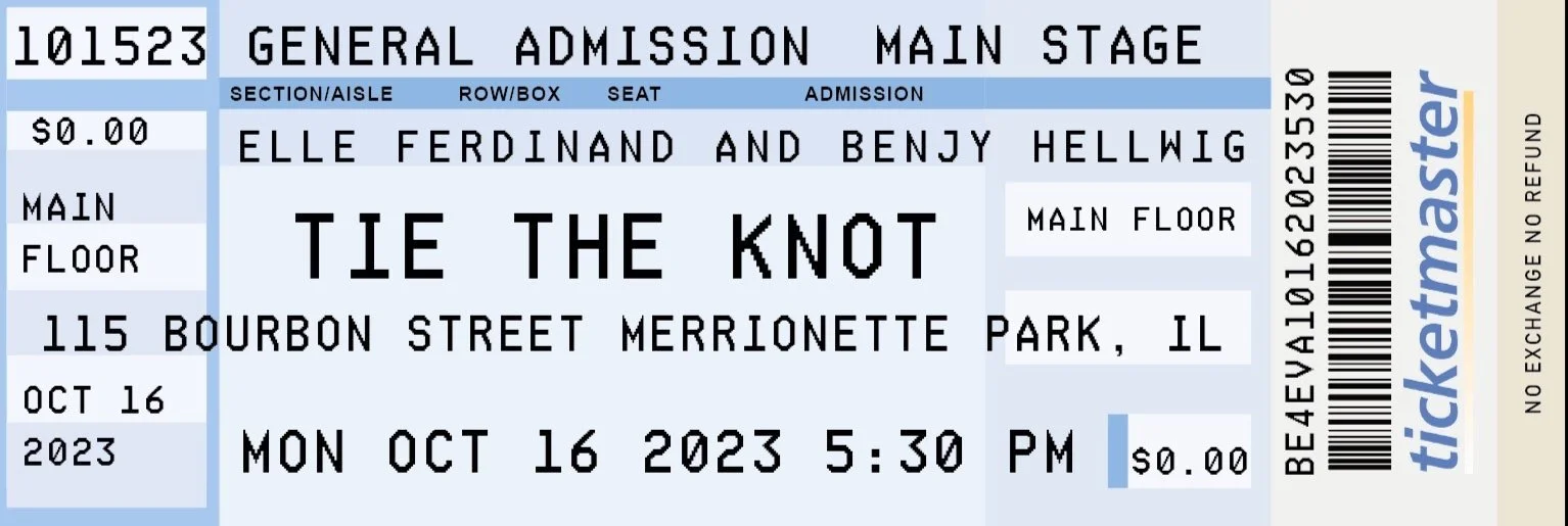 Got your ticket? RSVP RSVP Yes Yes, I'm attending No Sorry, we cannot attend Name * First Name Last Name How many attending? * Please list the names of those attending Thank you! Benjy & Elle Tie the Knot! Monday, October 16, 5:30 pm 115 Bourbon Street3359 W. 115th StreetMarionette Park, IL708 388 8881